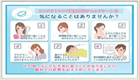 コンタクトレンズ使用状況チェックシートを使って、来店されるすべてのお客様に「気になることを再確認」していただき、チェックがついた項目について、お客様に丁寧にヒアリングされています。また、その際に眼科受診の必要性についてご説明もされています。再確認を機会に眼科を受診され、目の乾燥感等の症状改善につながっています。